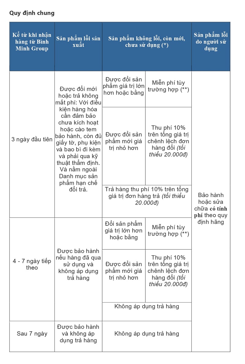 Chính Sách Đổi Trả Hoàn Tiền Tại Bình Minh