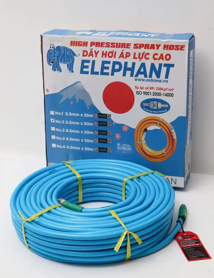Dây Phun Xịt Rửa Elephant No.2 8.5mm x 50m Xanh dương là sản phẩm lý tưởng dành cho các công việc vệ sinh, xịt rửa xe cộ, sân vườn, hoặc các công việc lau chùi công nghiệp. Với chất liệu cao cấp và độ bền vượt trội, dây phun Oshima mang đến hiệu quả công việc cao, tiết kiệm thời gian và công sức