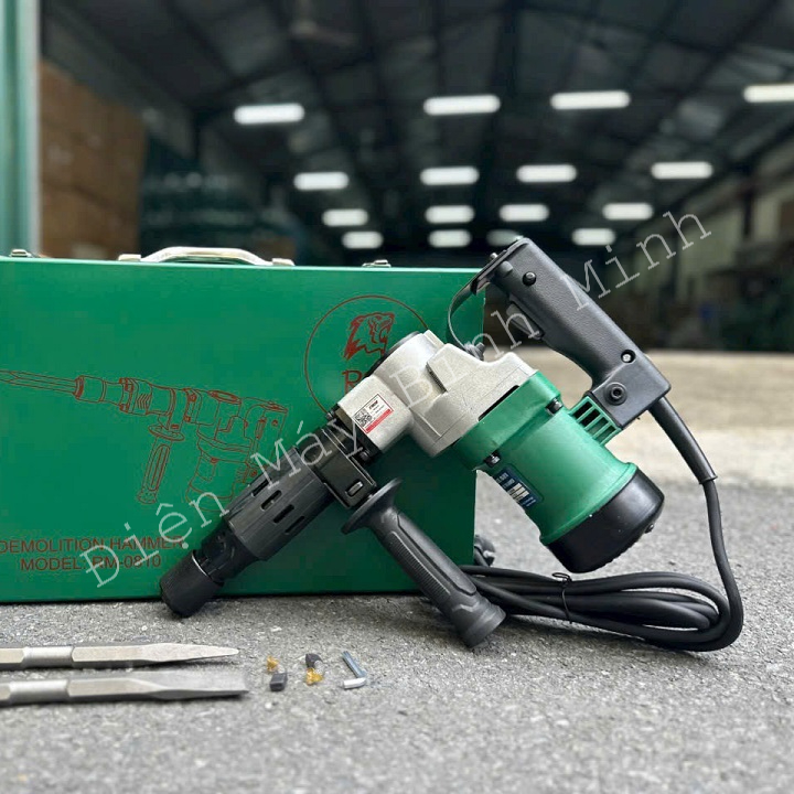 – Ngoài ra, máy còn có đế chống giữ giúp máy trở nên thăng bằng hơn. Và làm việc hiệu quả hơn,được trang bị 02 mũi đục dài, nhọn, sắc và độ cứng cao, chỉu tải liên tục và nhiều lần.