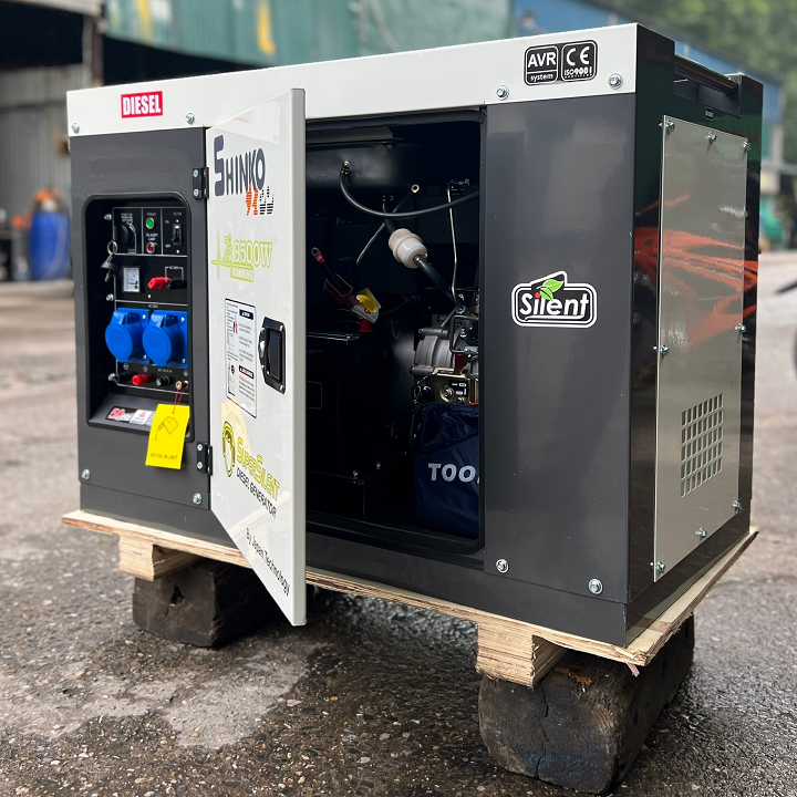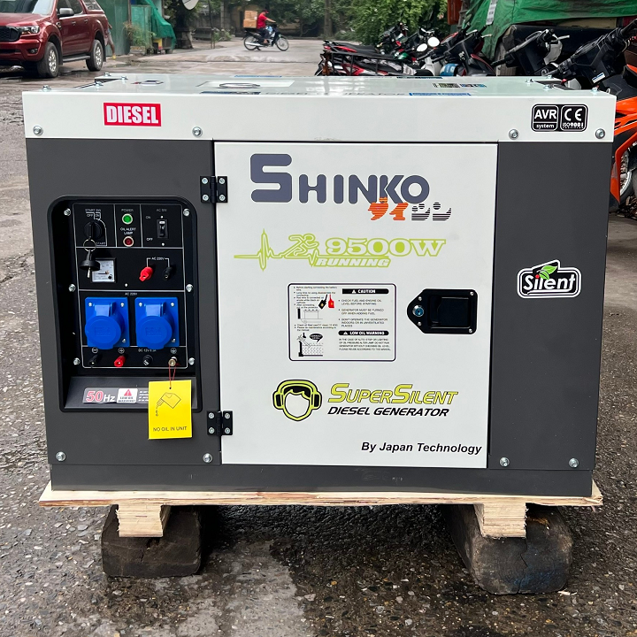 –Máy phát điện dầu diesel Shinko sk14000se có thể cung cấp điện cho các thiết bị sử dụng trong gia đình, cửa hàng hoặc nhà xưởng. Máy được thiết kế vỏ siêu chống ồn, thân thiện với môi trường.
