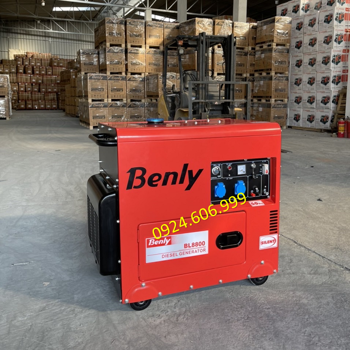–Máy phát điện dầu diesel 7Kw Benly BL8800. Có thể cung cấp điện cho các thiết bị sử dụng trong gia đình, cửa hàng hoặc nhà xưởng. Máy được thiết kế vỏ siêu chống ồn, thân thiện với môi trường.