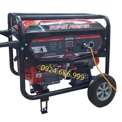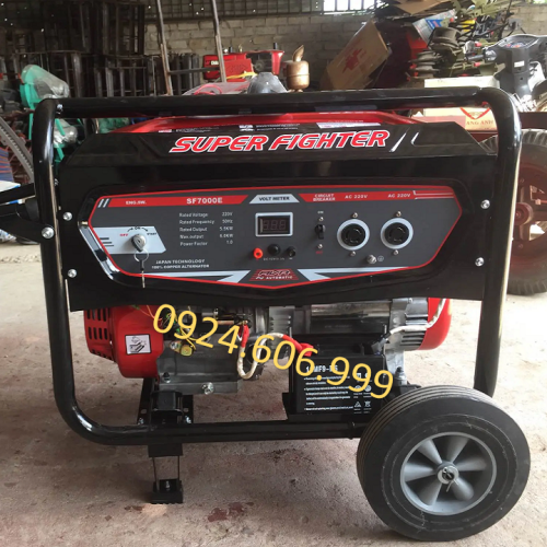 – Máy phát điện xăng 6Kw Super Fighter SF7000E đề điện. Là dòng sản phẩm máy phát điện sử dụng động cơ xăng 15HP. Chính hãng và đầu phát được sản xuất trên dây chuyền công nghệ hiện đại của Nhật Bản. Được thiết kế với mẫu mã đẹp, chất lượng cao. Giá thành phù hợp, được đông đảo khách hàng tin dùng.