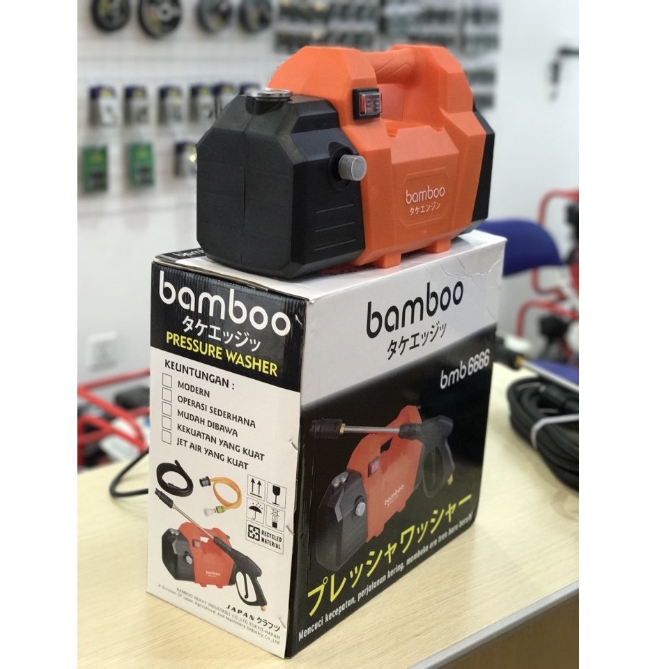 Máy Rửa Xe 1800W Bamboo 6666 được sản xuất trên công nghệ hiện đại của Nhật Bản tích hợp với những tính năng ưu việt: lưu lượng lớn, áp suất cao, thân thiện với môi trường, đạt tiêu chuẩn an toàn khi sử dụng, có tay cầm giúp cầm nắm và di chuyển dễ dàng.