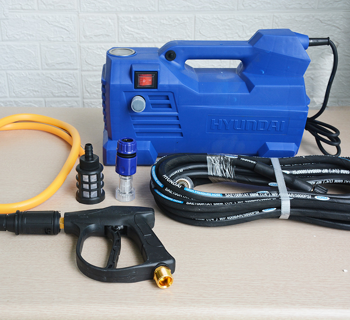 – Máy rửa xe gia đình Hyundai HRX915 (1500W). Là dòng máy rửa xe có chỉnh áp lực, tới từ chính hãng thương hiệu Hyundai. Với công suất 1500W, motor cảm ứng từ lõi đồng, cho khả năng phun xịt tới 120 bar rất mạnh mẽ.